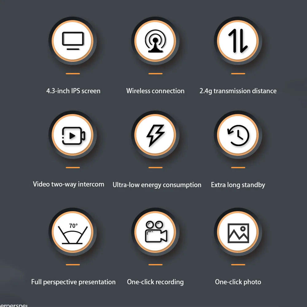 The Cantarini ViewBell™ Wireless Visual Doorbell brings security and simplicity together. With its sharp 4.3” IPS display and 2.4G wireless connection, you can see, hear, and speak to visitors from inside your home — no complicated installation required.